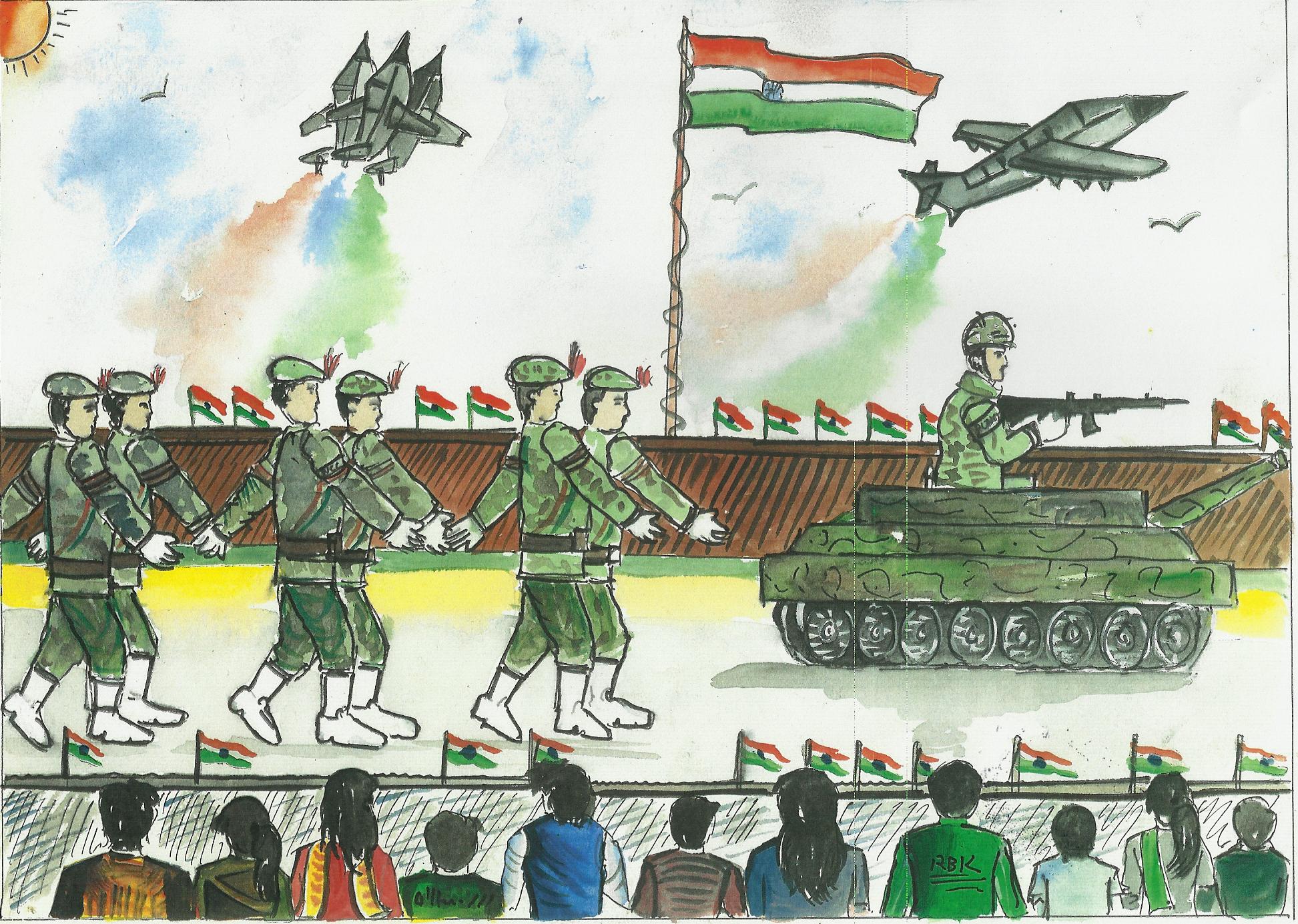 Uncategorized Flag Creative Indian Army Drawing Competition How to draw the indian army with india flag in hand independence day in this video i show you how to draw easy independence day scenery using oil